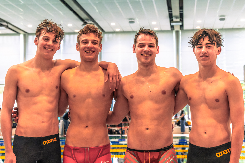 Am Ende des langen Wettkampfwochenendes stand dann noch einmal die 4x100m Lagen mixed Staffel mit Sara, Pablo, Leif und Emma an. Und auch wenn alle bereits sehr erschöpft waren, zeigten sie Kampfgeist und gaben alles.