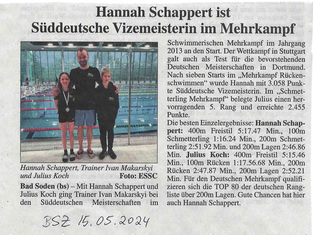 Freistil. Für beide war es der erste Start bei den Süddeutschen Meisterschaften und entsprechend groß war die Aufregung, so dass beide nicht ganz an ihre Bestleistungen herankamen, aber dennoch