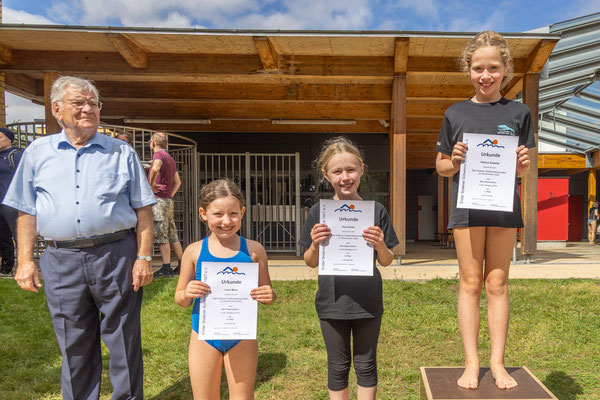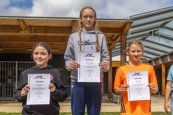 Im Wasserrutschen siegte im Jahrgang 2020 und jünger Charlotta Mora in 00:15,93 Min., im Jahrgang 2019-2017 siegten Antonia Viechtbauer in Zeit von 00:13,10 Min. Im Jahrgang 2016-2014 holte sich den ersten Platz Mathilda Mora in einer Zeit von 00:12,15 Min. In der Jugendklasse (Jg. 2013-2008) gewann Jana Habets in 00:12,38 Min. Erneut gab es Erwachsenenwertung - hier gewann Yvonne Schaeffer in einer hervorragenden Zeit von 00:12,41 Min. Einen großen Dank gilt der Stadt Bad Soden für die Möglichkeit der Durchführung und der Spende der Staffelpokale!