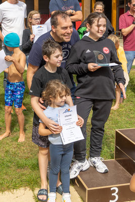 Höhepunkt der Veranstaltung war einmal mehr die Familienstaffel. Seit mehr als 35 Jahren sind die Familienstaffeln schon eine lange Tradition um die schnellste Familie Bad Sodens sowie um die begehrten Geschenkgutscheine. Diese Rennen sind immer eine große Motivation für die Kinder, im Rahmen der Familie für eine Sache zu schwimmen. Es siegte Familie Schramke (1:43.03 Min.), gefolgt von Familie Cosgrove (1:58.27 Min.) und Dritter wurde Familie Werner (2:00.55 Min.). Alle drei Familien platzierten sich erstmals für einen Podestplatz und bekamen auch die „Haifischflosse“ als Glastrophäe.